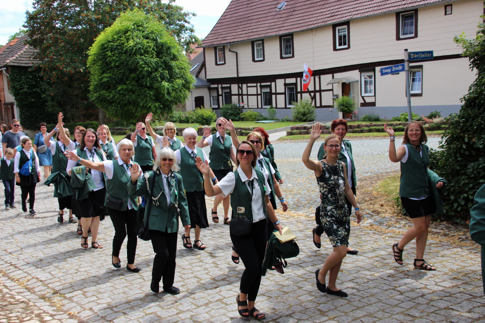 ![]() Nach dem Kommers im Zelt ging es zum Ständchen austragen durch das Dorf. |